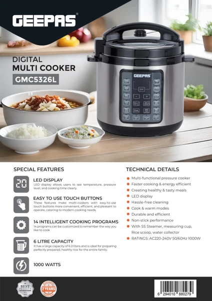 یکی از ویژگیهای خوب این محصول, چندکاره بودن آن میباشد. پخت برنج تنها یکی از کارهای این دستگاه میباشد که کاملا اتوماتیک انجام میشود. بدین معنی که شما کافیست مقدار برنج مورد نیاز خود, آب و روغن را اضافه کنید و دکمه مخصوص پخت برنج را فشار دهید. بخارپز کردن از دیگر ویژگیهای این پلوپز جیپاس 5326 میباشد که دارای ظرف مخصوص بخارپز نیز هست. با استفاده از قابلیت بخارپز کردن شما میتوانید گوشت, سبزیجات و غذاهای دریایی را بخارپز نمایید. از دیگر قابلیتهایی که این پلوپز جیپاس gmc5326 دارد قابلیت زودپز است. شما میتوانید هر غذایی را در مدت زمان کوتاهی با این دستگاه آماده نمایید. این محصول قابلیت گرم نگهدارنده نیز دارد. بدین معنی که اجازه نمیدهد غذای شما برای مدت طولانی سرد شود.
